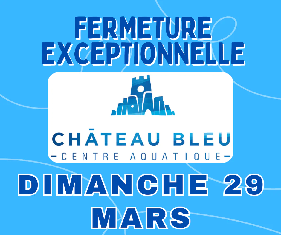 Nous vous informons que votre Centre Aquatique sera exceptionnellement fermé au public ce Dimanche 29 Mars.