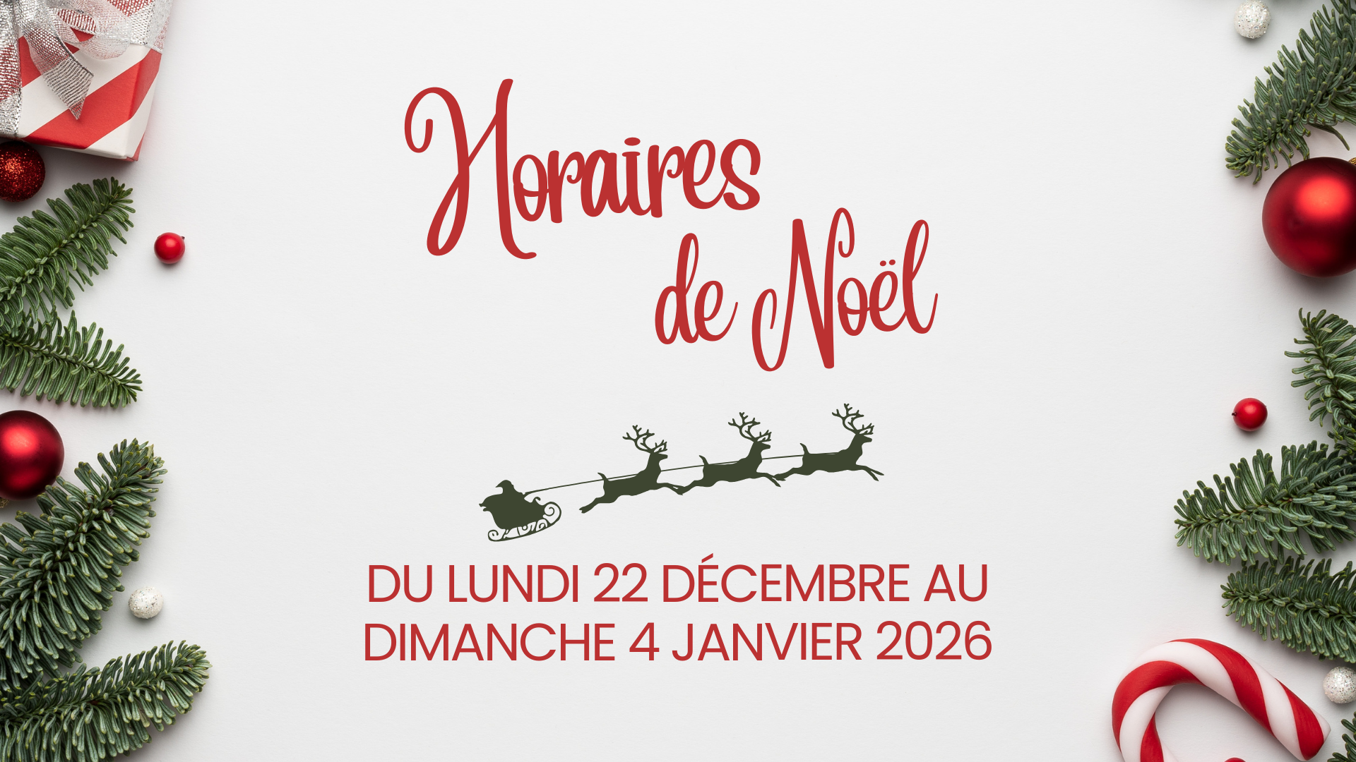 Du lundi 22 décembre au dimanche 4 janvier sur les horaires suivant :